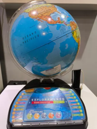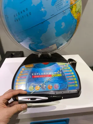 Globo terráqueo interactivo de Clementoni, modelo Explorador Connect 2.0. Ideal para aprender sobre geografía y culturas. - Idioma: Español. - Incluye lápiz óptico. - Múltiples modos de juego y aprendizaje.