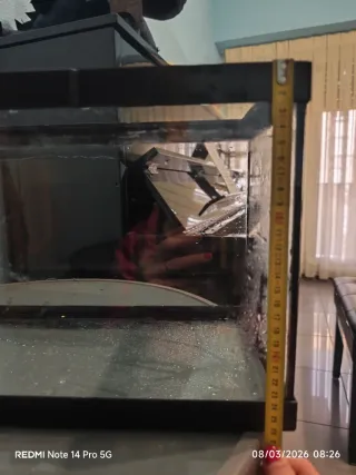 Acuario de cristal con marco superior e inferior. - Medidas= 26x26x40 Como nuevo ,se vende por falta de uso ,antes de usar se recomienda limpiar a fondo y desinfectarlo ☺️.para gente que no quiera un acuario grande☺️.