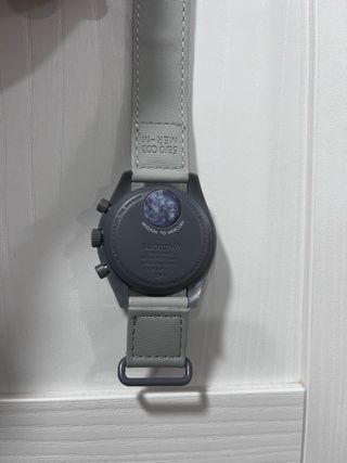Reloj Speedmaster con correa de velcro. - Esfera gris. - Correa de velcro gris con logo Omega. - Bisel con escala taquimétrica. - sin caja