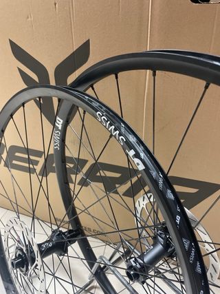 Somos tienda. Juego de ruedas DT Swiss X1900 a estrenar, proceden desmontaje de bicicleta nueva. El precio es sin discos, con discos sram 160/180 +50e. Ancho interno 25mm. Buje trasero boost 12x148 Nucleo xd Buje delantero boost 15x110 Posibilidad de añadir cubiertas o valvulas. Hacemos envios