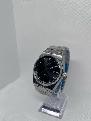 Reloj Tissot PRX mod con esfera negra y brazalete de acero inoxidable. Un diseño elegante y moderno. - 40mm - Caja de acero inoxidable. - Esfera negra. - Brazalete de acero. - Cierre desplegable. - sumergible - no incluye caja