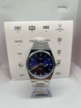 Reloj tisot PRX mod con esfera azul y detalles plateados. - 40mm - Diseño moderno y elegante. - Brazalete de acero inoxidable. - sumergible - caja y correa de acero - sin caja
