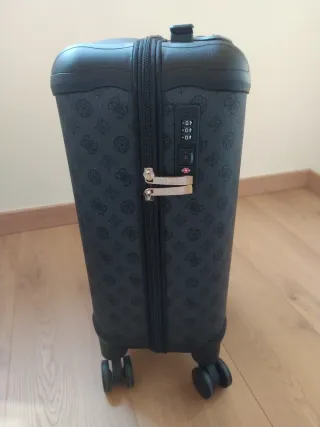 Maleta de cabina Guess con un diseño moderno y elegante. Perfecta para tus viajes. - Diseño estampado con el logo de la marca. - Cerradura de combinación TSA. - Ruedas multidireccionales para facilitar el transpote. Precio nueva 190€