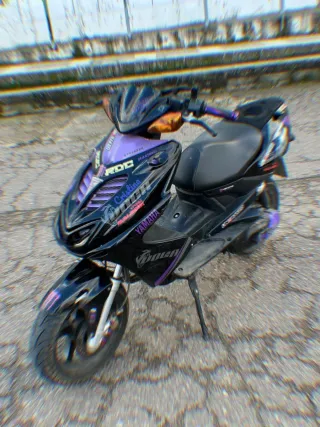 Yamaha Aerox personalizada en negro y morado. Lleva: Malossi sport 70cc Yasuni carrera 16 21 dellorto PHBG Variador malossi multivar Embrague malossi Filtro de potencia Bifaro