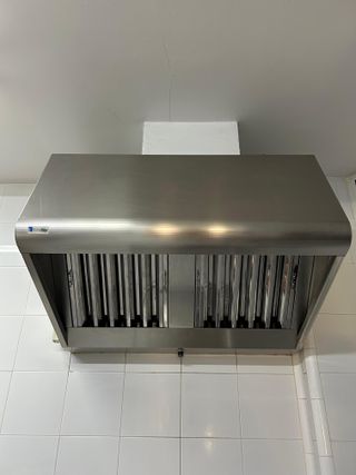 Extractor de humo profesional, ideal para carnicerías y establecimientos de hostelería. MEDIDAS: - Alto = 0,65m - Largo = 1m - Ancho = 0,75m - Fabricado en acero inoxidable. - Diseño robusto y duradero.