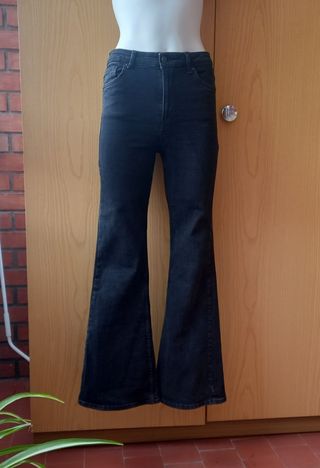 Vaquero Flare, Mujer. Negro. Bershka. T 38/M. Medidas: cintura 36 cm (estira), largo 78,5 cm (desde entrepierna), ancho del bajo 27 cm. Elástico. Cintura alta. #vaqueroflare38 #flarebershka38 #mujer38