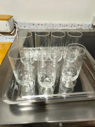 Juego de 7 vasos y 1 jarra de cristal tallado