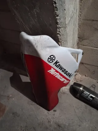Quilla deportiva para Kawasaki Z800. - Diseño aerodinámico. - Color blanco y rojo. - Logo de Kawasaki y Hot-Road impreso.
