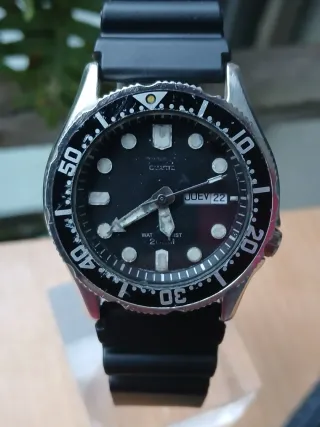 Funciona correctamente. Cristal de zafiro. Corona enroscada. Tiene un diámetro de 37 mm. Acepto las devoluciones. Garantía de un año.