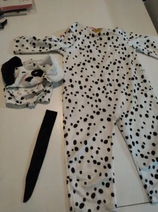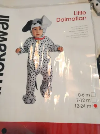 Disfraz de dálmata para bebé, perfecto para fiestas o para el día a día. Solo se uso una vez - Mono completo con estampado de manchas. - Capucha con orejas. - Cola a juego.