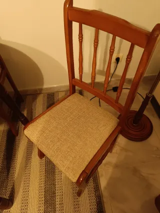 4 Sillas de madera tapizadas beige y marrón