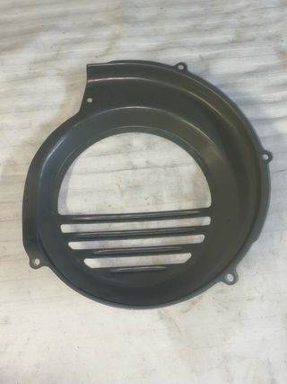 Protector para el ventilador del motor de una Vespa. Pieza de metal con acabado gris. Desconozco exactamente a que modelo pertenece. - Diseño circular con rejilla. - Agujeros para sujeción. Clave: pks primavera 74 75 80 125 150 160 175 180 200 250. Sport sprint