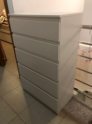 Cómoda de 5 cajones serie Kullen de Ikea. Falta un pequeño punto de pintura en uno de los cajones (foto 2) Medidas en una de las fotos