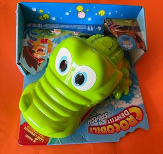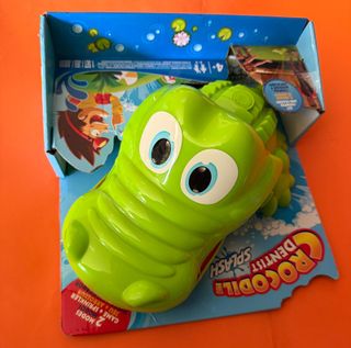 Juego de cocodrilo sacamuelas, versión acuática. - Incluye juego y accesorio rociador. - Dos modos de juego. - Para mayores de 4 años. Juego de agua cocodrilo sacamuelas version acuatica, funciona como aspersor al aire libre, es de la marca Hasbro, se puede conectar a cualquier tipo de manguera, se puede usar sin agua como el juego clasico, su precio en amazon es de 52 euros