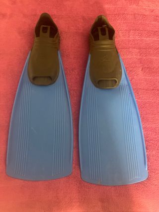 Par de aletas de snorkel de color azul. - Diseño ergonómico para mayor comodidad. - Pala ancha para propulsión eficiente. - Material flexible y resistente.
