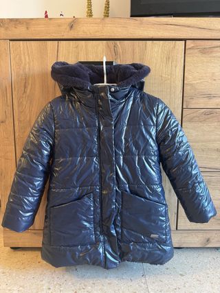 Abrigo reversible de la marca Boboli con un bonito estampado floral. Y de regalo un gorro y un buff. - Diseño reversible. - Estampado floral multicolor. - Capucha. - Cierre de cremallera.