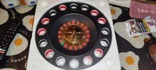 Juego de ruleta para disfrutar de chupitos con amigos. Incluye la ruleta y los vasos. - Diseño de ruleta de casino. - Incluye vasos de chupito.