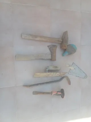 Herramientas de albañil: mazos, paletas, etc.