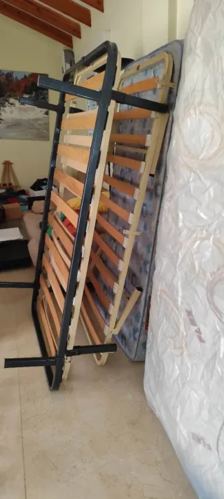 Se venden 4 somieres de 95cm y 2 colchones. - Medida de los somieres: 95cm. - Incluye 2 colchones.