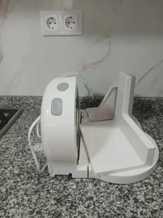 Máquina eléctrica para cortar fiambres y alimentos. - Color blanco. - Diseño compacto para encimera.
