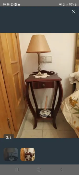 Cabecero de cama+mesillas madera+ lamparas noche