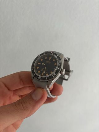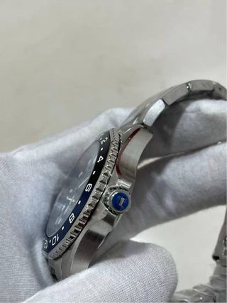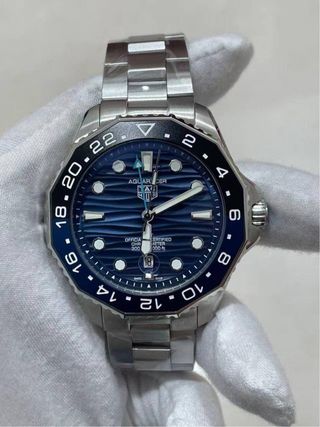 Espectacular TAG Heuer Aquaracer Professional 300 GMT en estado impecable. Reloj de buceo de alta gama con función GMT para un segundo huso horario, ideal tanto para uso diario como para actividades deportivas. Este modelo destaca por su característico bisel cerámico bicolor en azul y negro ("Batman"). Características principales: • Referencia: WBP2010.BA0632 (o similar de la serie actual). • Caja: Acero inoxidable de 43mm con acabado cepillado y pulido. • Dial: Azul con patrón de ondas horizontales y ventana de fecha con lupa a las 6. • Bisel: Giratorio bidireccional de cerámica azul y negra con escala de 24 horas.