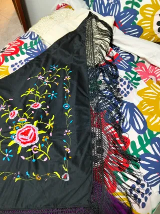 Hago lotes. Elegante mantón de Manila con bordado de pico. - Diseño floral vibrante. - Acabado artesanal. - Ideal para complementar atuendos. Más productos en mi perfil.