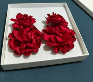 Hago lotes. Sin estrenar. Pendientes hechos a mano con un diseño floral. - Elaborados con tela satinada. - Color rojo intenso. - Diseño único y llamativo. Más productos en mi perfil.