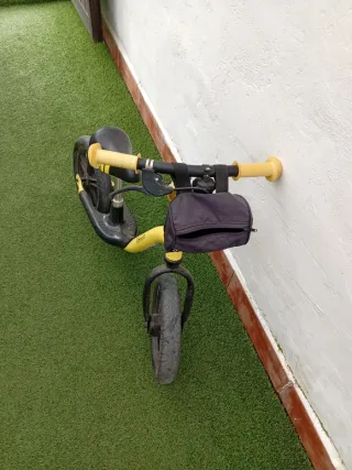 Bicicleta de equilibrio de color amarillo, ideal para los más pequeños. - Ruedas de goma. - Manillar con puños de goma
