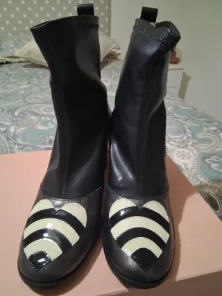 Botas negras, tacon gris, con corazón
