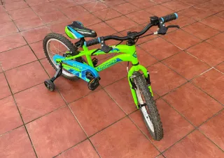 Bicicleta infantil Megamo Kid de 18 pulgadas en llamativos colores verde y azul. - Cuadro resistente. - Ruedines incluidos. - Diseño deportivo.