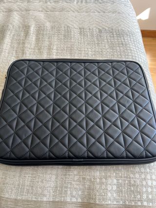 Funda acolchada para portátil con un diseño elegante. - Acabado acolchado con patrón de rombos. - Cierre de cremallera. - Logo de la marca visible.