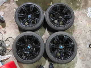 Juego de llantas BMW Style 194 M con neumaticos Bridgestone Potenza Runflat con bastante vida útil todavía. Delanteras 225/45/17 91Y Traseras 255/45/17 94Y - Acabado negro - medidas detalladas en última foto Todas perfectas menos una con un leve rayazo de aparcar.