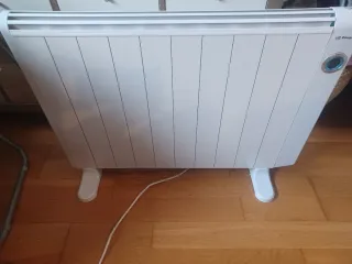 Calefactor eléctrico de pie con una potencia de 1800W. Practicamente sin uso. - Diseño moderno y elegante. - Patas de apoyo estables. - Cable de alimentación incluido.