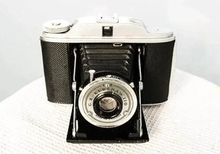 Cámara en buen estado estético y funcional. Flash Agfa con bombilla, caja , funda e instrucciones (con ligeros signos de uso y sin probar). Agfa Isola era una línea de cámaras con visor de formato medio fabricadas por Agfa en Alemania. La lente es plegable; una vez extendido, se giró para bloquearlo nuevamente en la posición de almacenamiento. El disparador solo puede activar el obturador cuando la lente está extendida. Cuando el indicador encima del botón del obturador está rojo, no puedes tomar una exposición El objetivo Agfa Agnar, es un diseño triplete simple para la apertura puedes elegir entre f6.3 y f11.