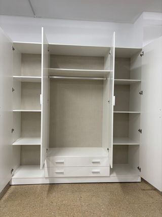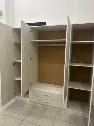 Conjunto de muebles para habitación juvenil, ideal para optimizar el espacio. Incluye una cama con cajones y cama supletoria, mesita, estantería horizontal, estantería vertical, escritorio con mueble zapatero