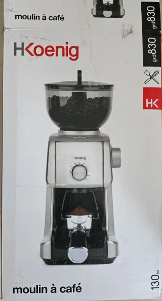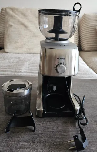 Molinillo de café H Koenig, modelo GRD830. Diseñado para moler granos de café frescos. - Depósito superior para granos. - Selector de molienda. - Incluye portafiltro. Nuevo a estrenar. Vendo por no usar.