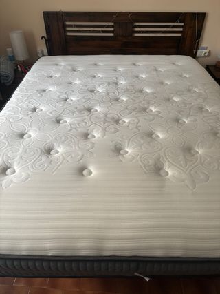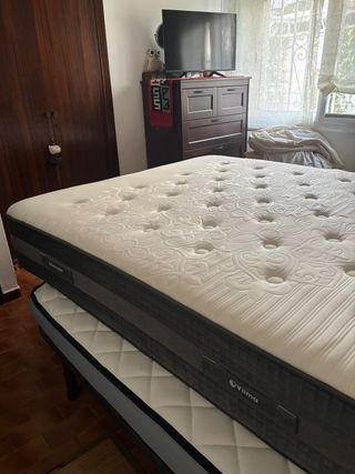 Colchón viscoelástico de 150x190 cm. - Tejido exterior con diseño acolchado. - Altura estándar para camas de 150cm. -Usado durante 2 semanas El Colchón Viscoelástico Elixir New cuenta con un núcleo Eliocel fabricado con espuma de alta densidad al que se le suman ocho centímetros de viscoelástica con Supersoft. Lo que le permite ofrecer una firmeza media-alta a la par que una gran adaptabilidad. Cuenta con un tratamiento antibacterias contra alérgenos y suciedad. Además de aloe vera para prevenir alergias y garantizar la máxima suavidad