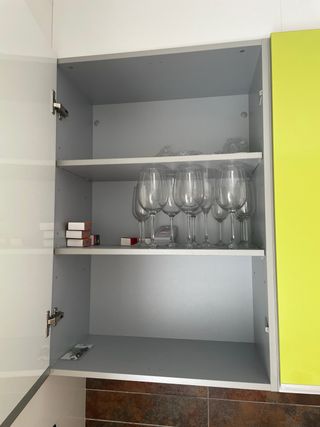 Conjunto de muebles de cocina en colores verde y blanco. IMPECABLE. - Diseño moderno y funcional. - Combinación de acabados brillantes y mate. - Incluye armarios superiores e inferiores. - también olción de electrodomésticos (a negociar)