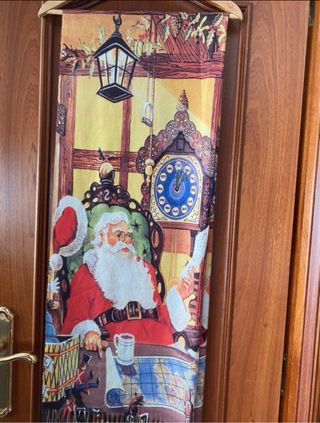 Tapiz decorativo de la colección Año Nuevo de Italiana Milano. Presenta una escena navideña detallada con Santa Claus, un muñeco de nieve y juguetes. - Diseño festivo y colorido. - Ideal para colgar en paredes durante la temporada navideña. -Regalo para el año nuevo