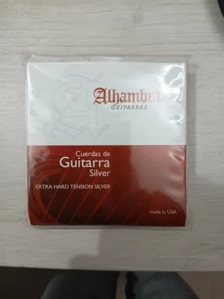 Juego de cuerdas para guitarra clásica Alhambra. - Modelo: Cuerdas de Guitarra Silver - Tensión: Extra Hard Tension Silver - Fabricado en USA. Compradas por error, utilizo light tension.