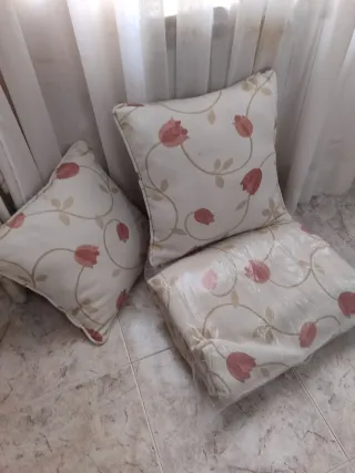 Conjunto de cortinas y colcha con estampado floral. Medidas colcha para cama de 105x80cm - Diseño floral en tonos beige y rosa.