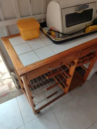 Mueble auxiliar de cocina con un diseño práctico y funcional. Es viejo se ve el estado en las fotos