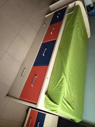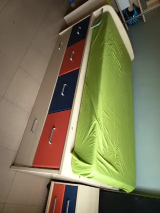 Conjunto juvenil:cama, mesita, escritorio, estante