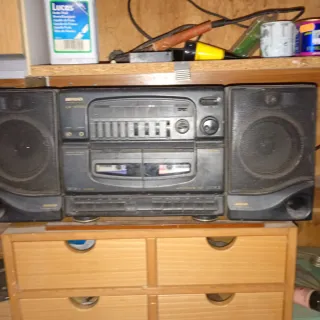 Radiocaset Aiwa en color negro con doble pletina para cintas de casete. Incluye radio AM/FM y altavoces integrados. - Doble pletina. - Radio AM/FM. - Altavoces Aiwa.