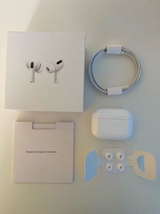 Auriculares inalámbricos Apple AirPods Pro de primera generación. - Incluye estuche de carga. - Cable de carga USB-C a Lightning. - Almohadillas de repuesto en diferentes tamaños.