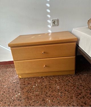 Mueble de habitación con dos cajones. - Diseño sencillo y funcional. - Tiradores redondos. - Acabado en madera.