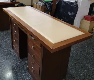 Elegante mostrador con un diseño clásico y funcional. - Estructura principal de madera. - Superficie de trabajo cubierta en piel.
