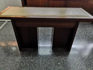 Mostrador de madera con tapa de piel
