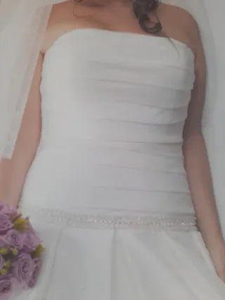 Elegante vestido de novia de la marca Rosa Clará. - Cinturón adornado con pedrería. - Velos largos y vaporosos. ☆pecho 89cm ☆cintura 78cm ☆sobrecadera 97cm ☆largo (palabra de honor a base)129cm ☆can-can ☆velo NEGOCIABLE